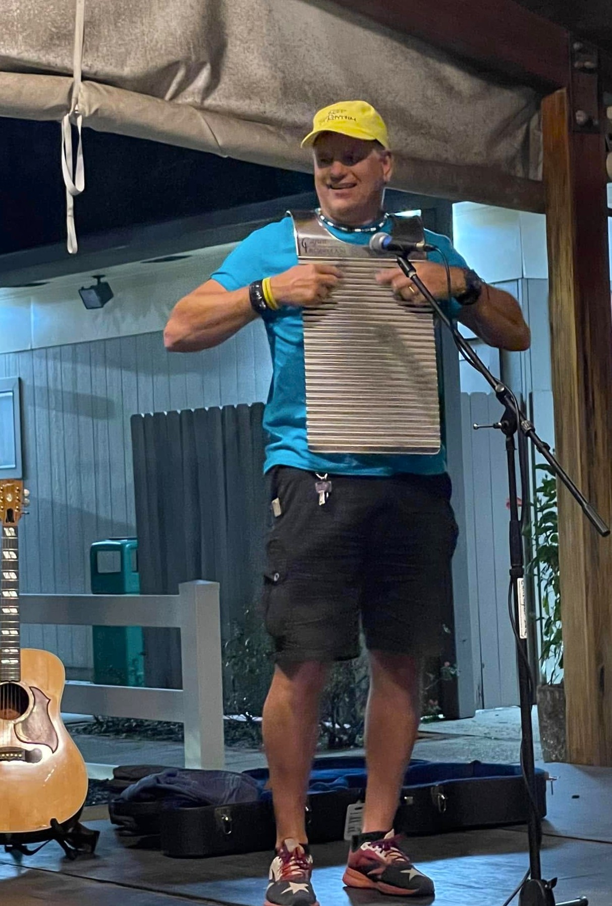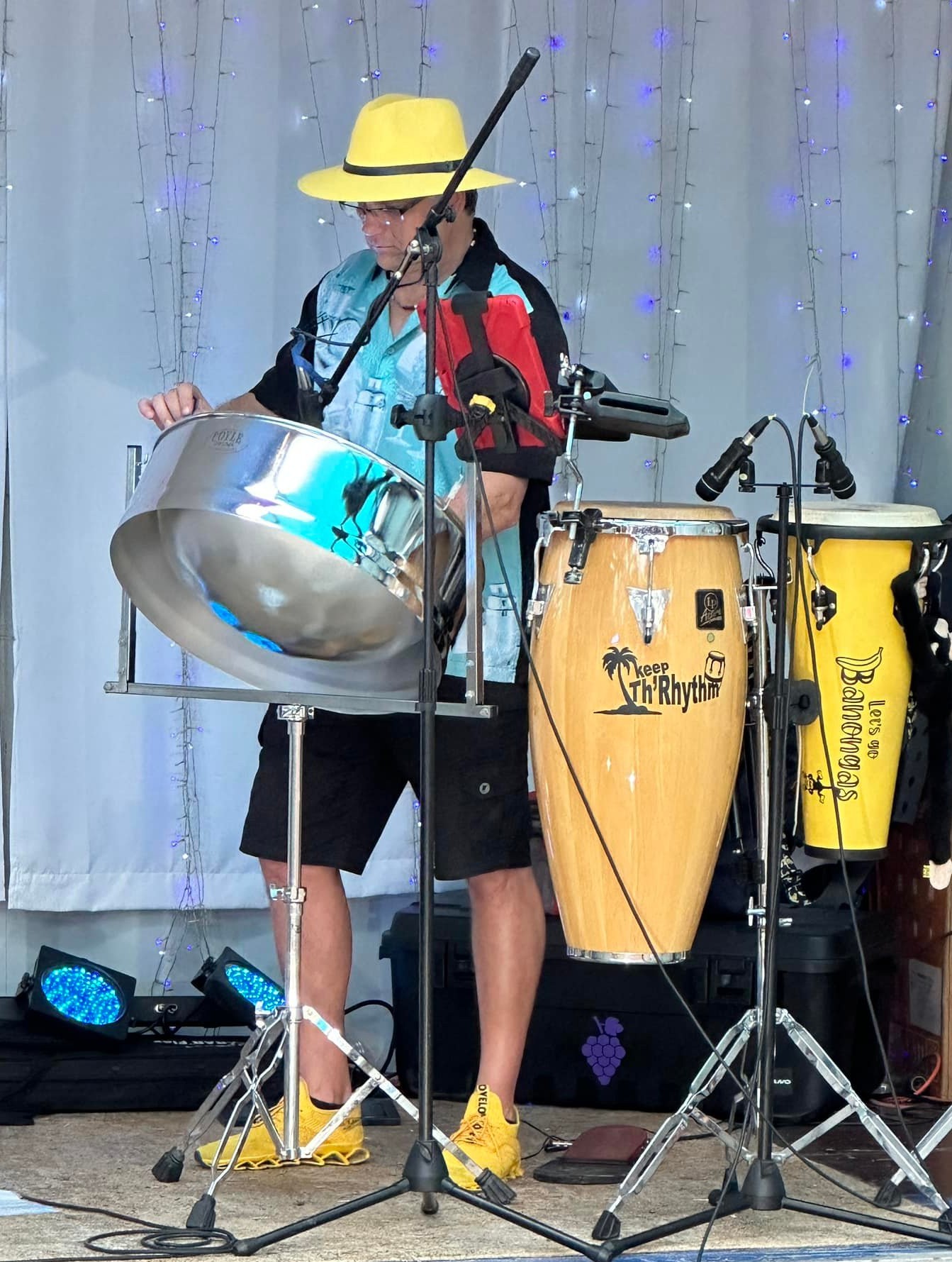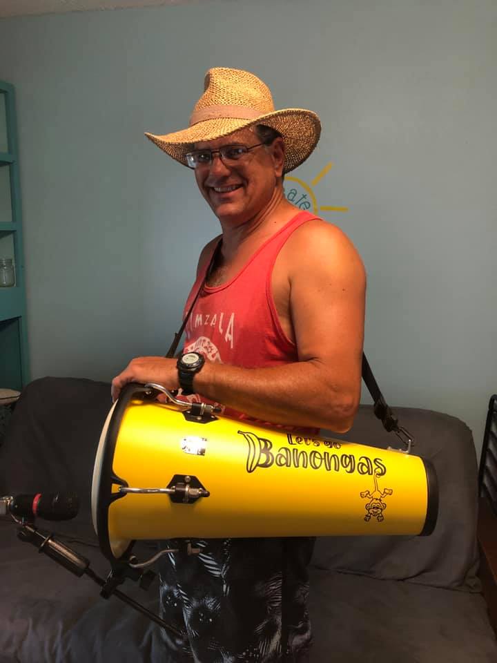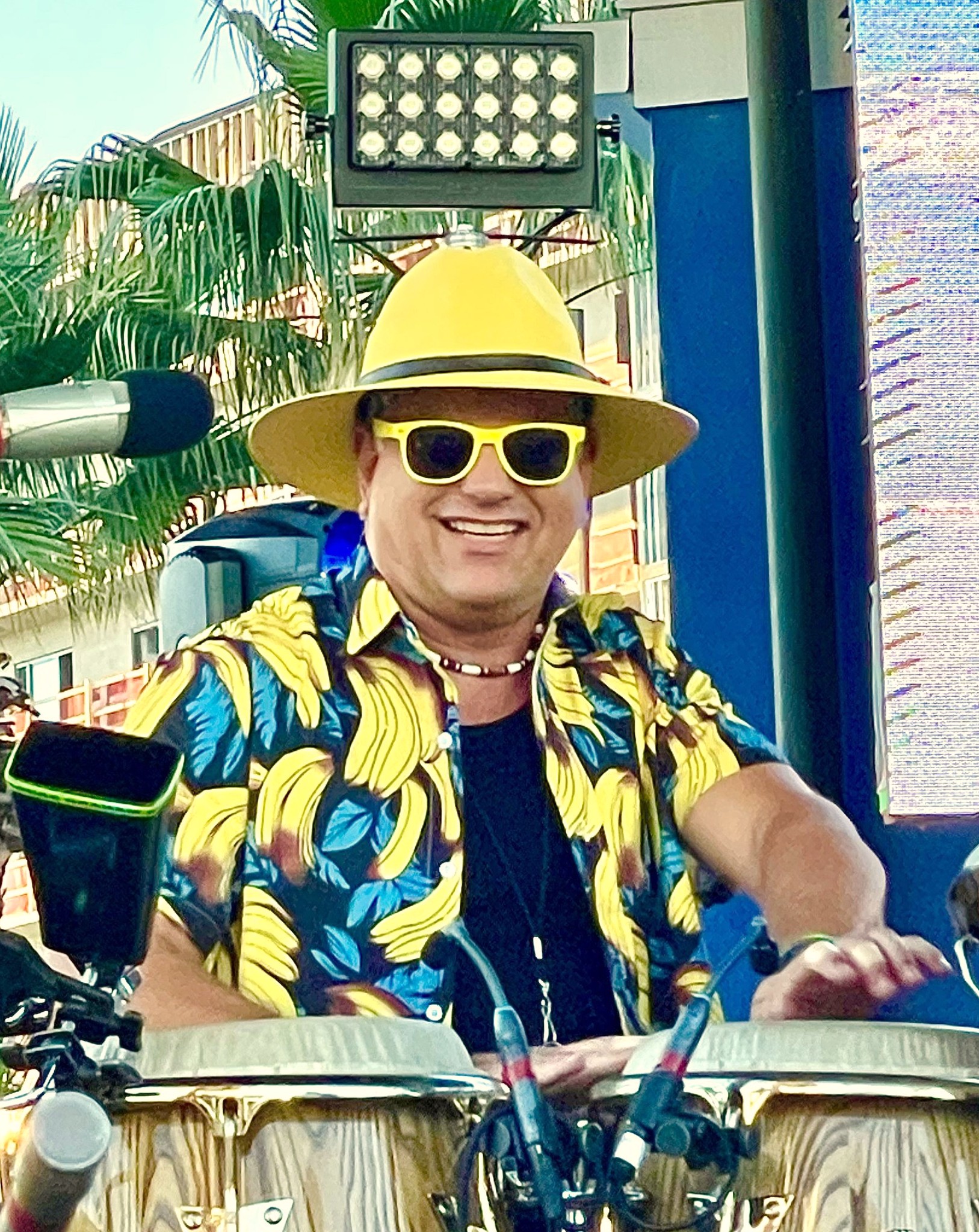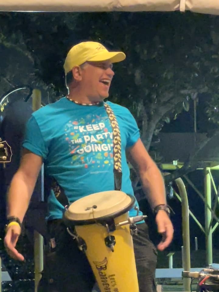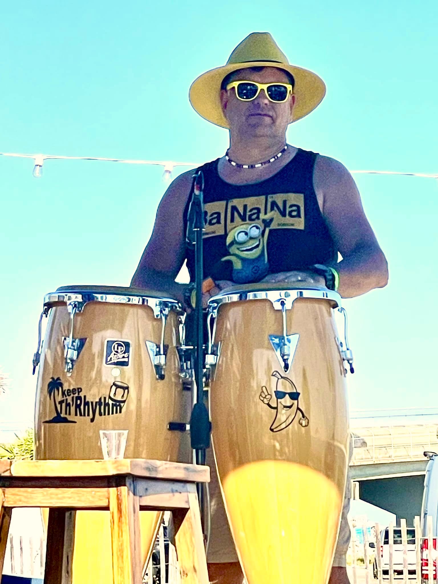 This is Ric. He’s the Banonga Man. What’s a Banonga? Well it’s across between a conga and a bongo. And it’s yellow. Why? ‘Cause yellow’s fun, that’s why. And fun is really what it’s all about right? And Ric, well, he’s the Banonga Man because he’s fun too. So if you need someone to keep the rhythm, in a full band, trio, or just to give your solo act a bigger sound, the Banonga Man is for you.